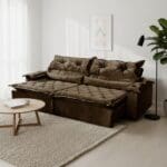 O Sofá Âmbar Retrátil e Reclinável 240 cm combina conforto, resistência e sofisticação para transformar sua sala em um verdadeiro espaço de relaxamento. Revestido em veludo Jolie marrom, ele traz elegância e aconchego, além de ser fácil de harmonizar com diferentes estilos de decoração.
