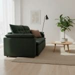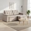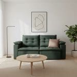 O assento é confortável e tem altura ideal para o dia a dia, enquanto o encosto proporciona suporte ergonômico para a coluna. Com pés em madeira natural, o sofá garante estabilidade e durabilidade.