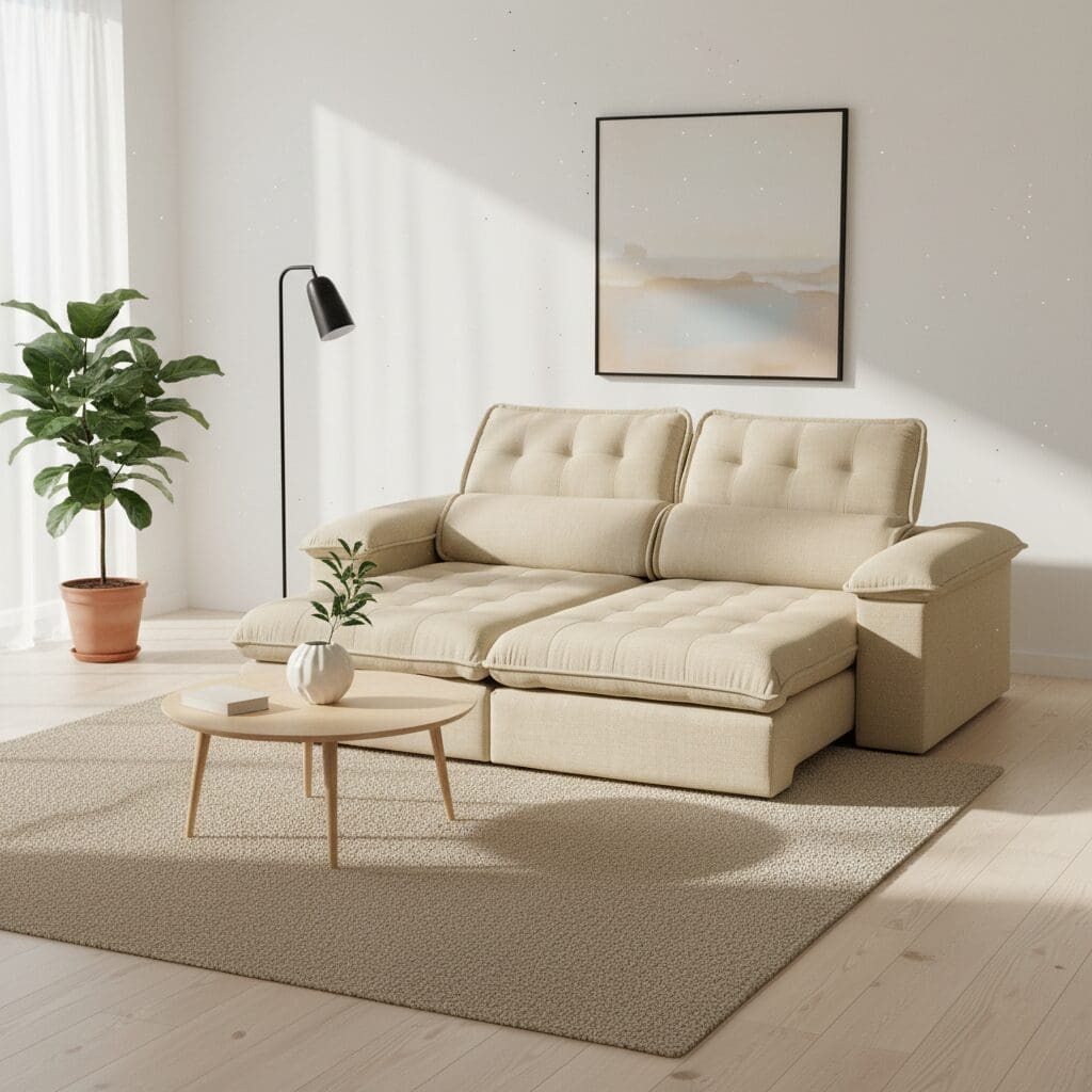 O Sofá Retrátil e Reclinável Astro é a personificação do conforto e da praticidade para a sua sala de estar. Mais do que um simples objeto decorativo, ele foi projetado para oferecer uma experiência superior de bem-estar, combinando um design criativo com funcionalidades que se adaptam à sua rotina. Seus assentos com espuma D33 e molas ensacadas garantem o suporte ideal, seja para assistir a um filme ou para receber amigos.