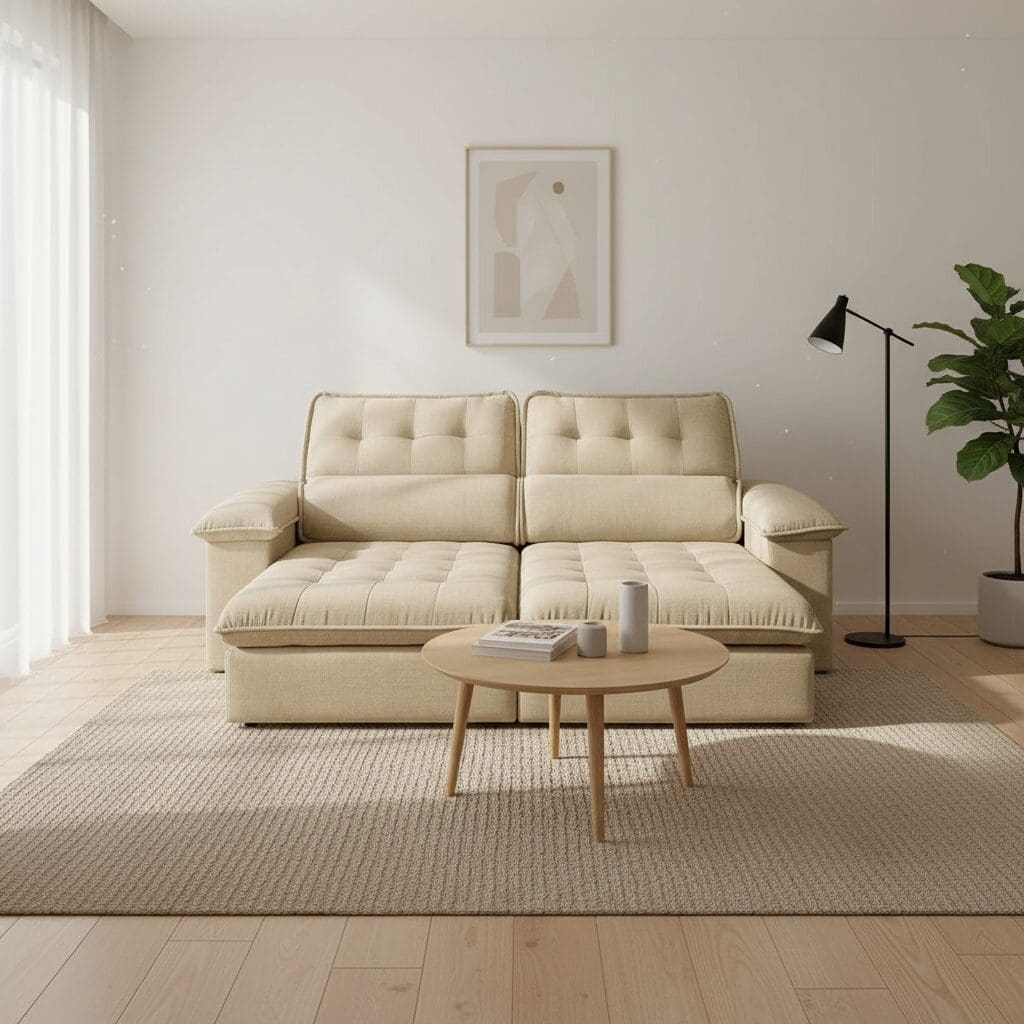 O Sofá Retrátil e Reclinável Astro é a personificação do conforto e da praticidade para a sua sala de estar. Mais do que um simples objeto decorativo, ele foi projetado para oferecer uma experiência superior de bem-estar, combinando um design criativo com funcionalidades que se adaptam à sua rotina. Seus assentos com espuma D33 e molas ensacadas garantem o suporte ideal, seja para assistir a um filme ou para receber amigos.