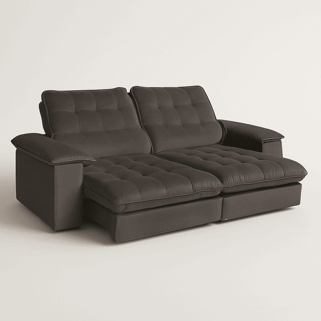 - Tipo: Sofá com assentos retráteis e encostos reclináveis.