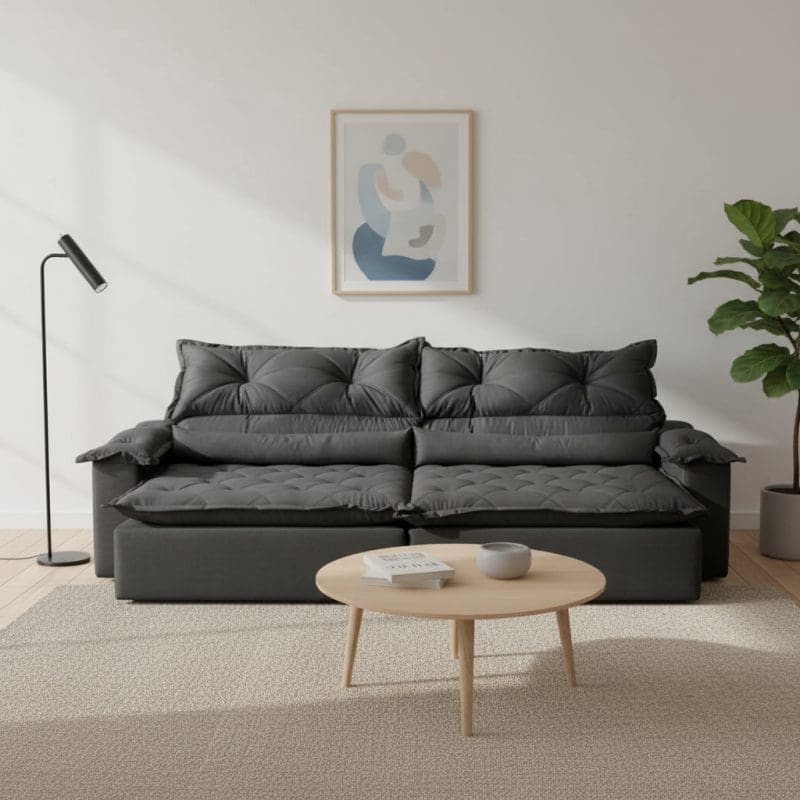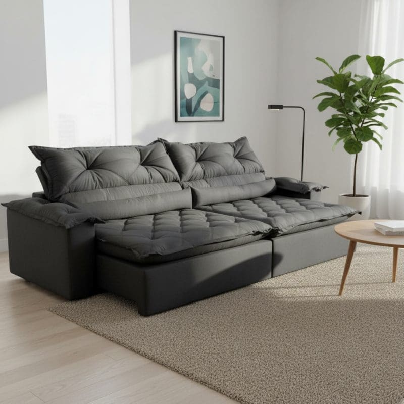 O Sofá Âmbar Retrátil e Reclinável 240 cm é ideal para quem busca conforto, elegância e praticidade em um único móvel. Revestido em veludo Jolie grafite, ele oferece toque macio e visual moderno, perfeito para harmonizar com diferentes estilos de decoração.
