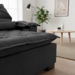 Os assentos retráteis contam com mecanismo em tubo metálico e rodízios de silicone, que proporcionam abertura suave e resistente. O pillow de 15 cm de altura, preenchido com espuma D26 softy, garante maciez premium, enquanto as almofadas em fibra siliconada e manta acrílica trazem aconchego ao encosto.